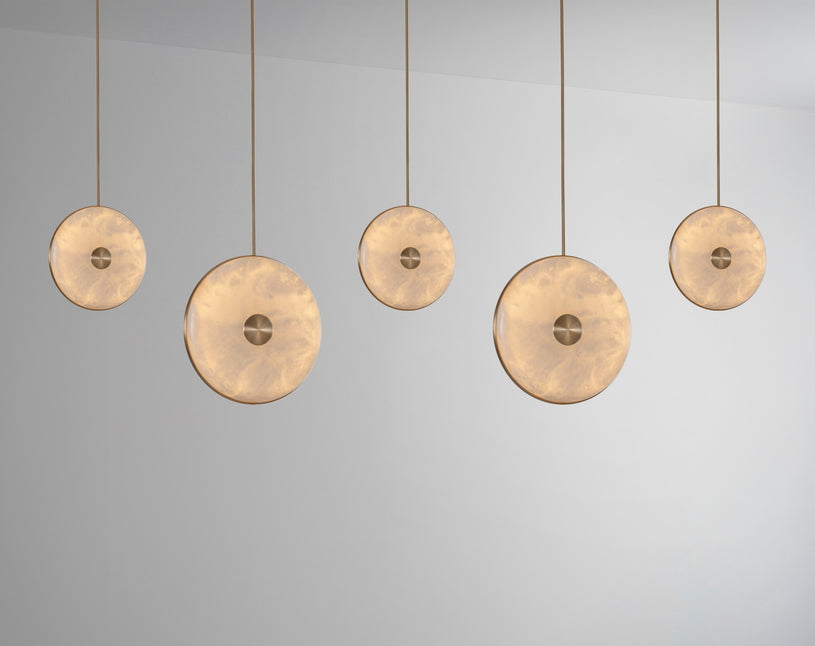We select the finest alabaster, quarried in the Aragon region of Spain. Alabaster has a wonderful softness, while being surprisingly robust, and the natural creamy white marbling creates a very gentle light that is calming and welcoming.
