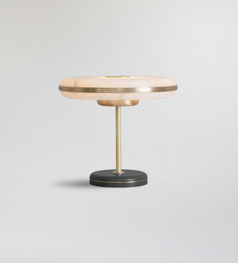 The natural alabaster stone diffuser sits proudly upon a solid brass stand and powder-coated base to form a stylish table lamp for any table top. The contrasting colour options for the base can transform the product from a more reserved object to a stunning centrepiece, depending on the desires of the user and the positioning within the room.