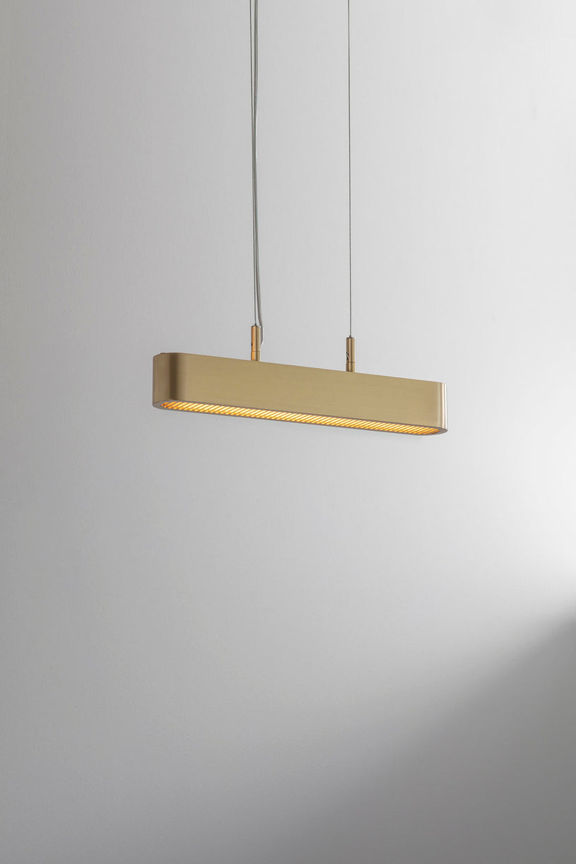 Crafted from heavyweight, machined cast brass. Sleek slotted diffuser casts soft light to ceiling and floor. Extremely versatile, with an integral LED light source.