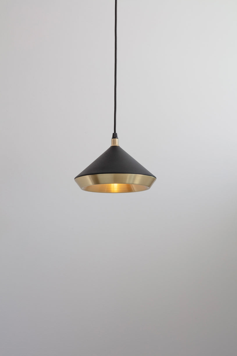Timeless design crafted in brass and turned metal; the Shear Pendant offers a compact yet sophisticated lighting solution. The brushed finish on the inner shade creates a warm, inviting glow. Customise your piece with our range of brass finishes and powder coat options for the perfect colour combination.