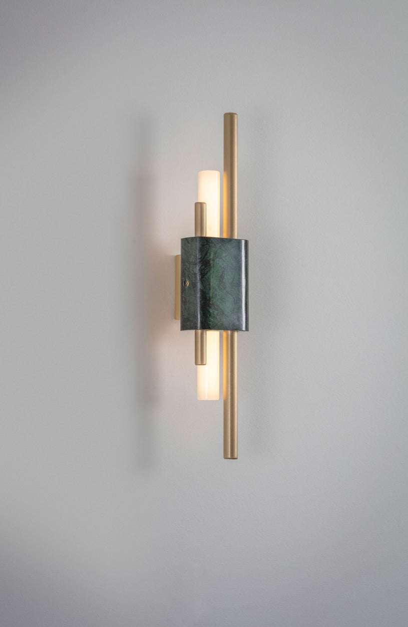 If you need a long, slim light – perhaps to position between windows – Tanto fits the bill. Our aim was to create an abstract, modernist light in traditional age-old lighting materials. Brass, marble, glass.